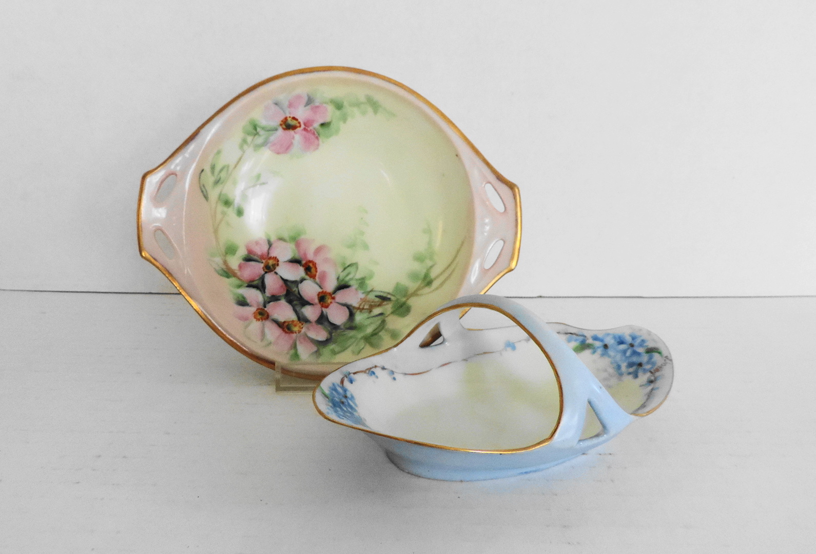 Vintage Rs Germany Bone China Hand Painted Pink Flowers 5 1 4 D 3 Fruit Bowls Ebay